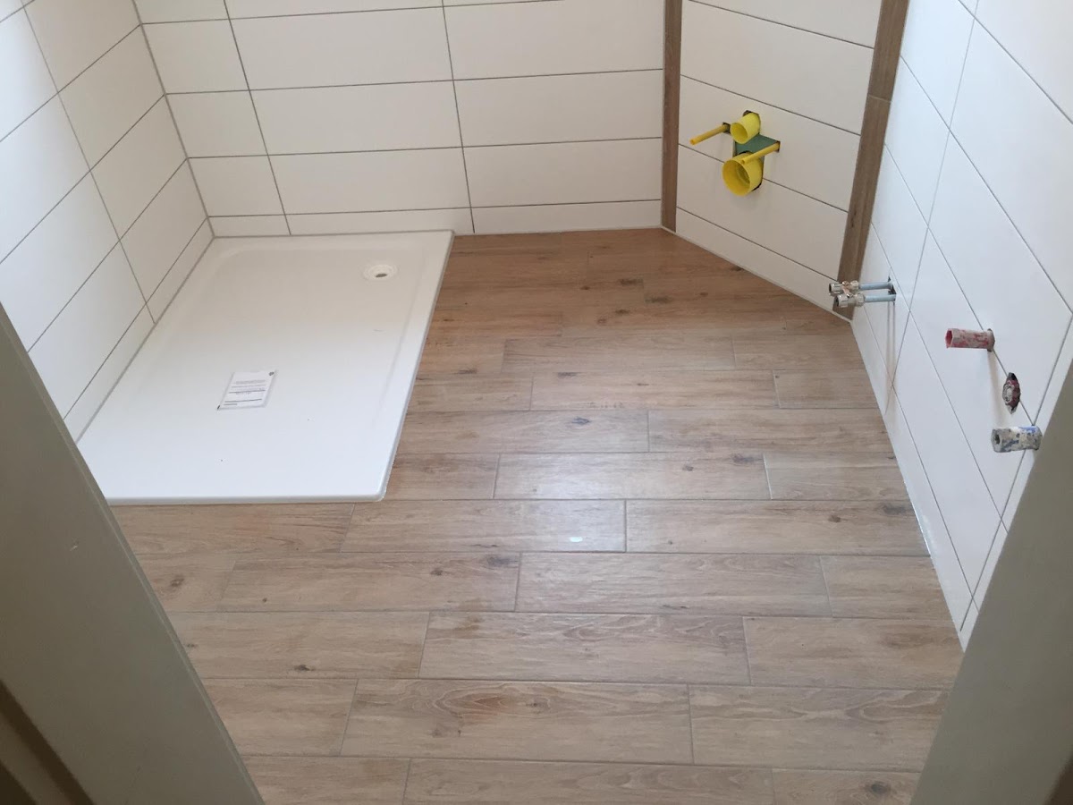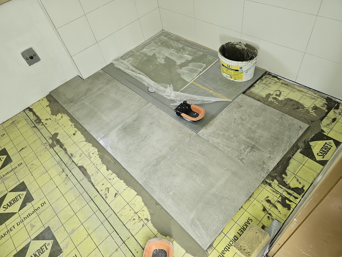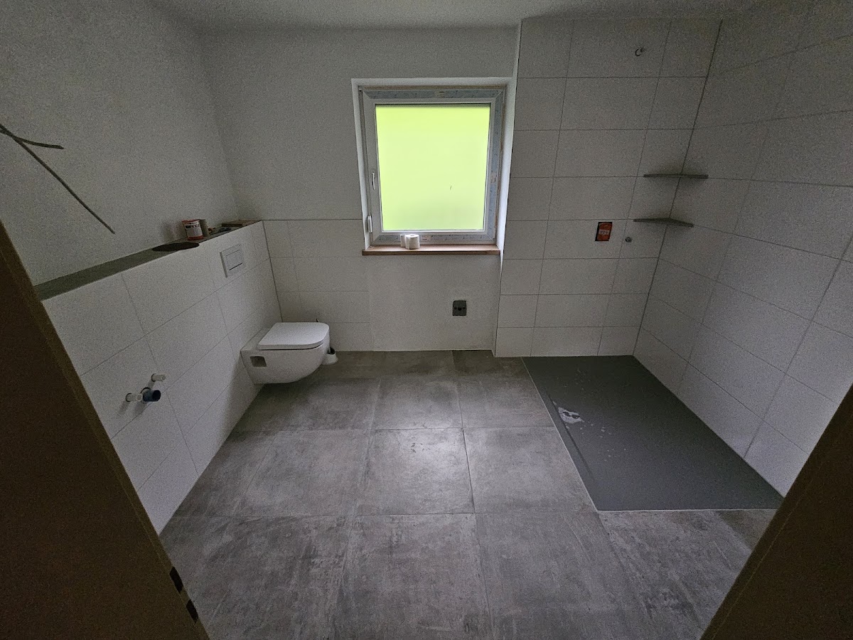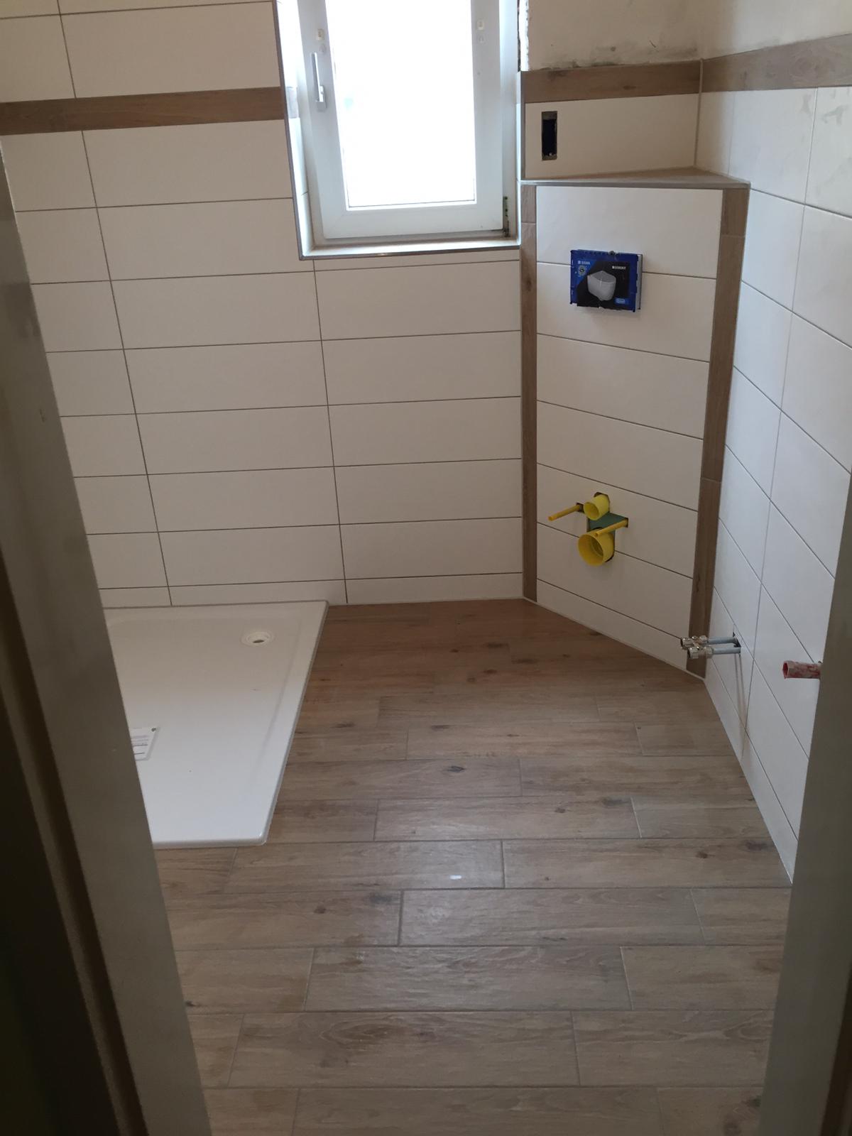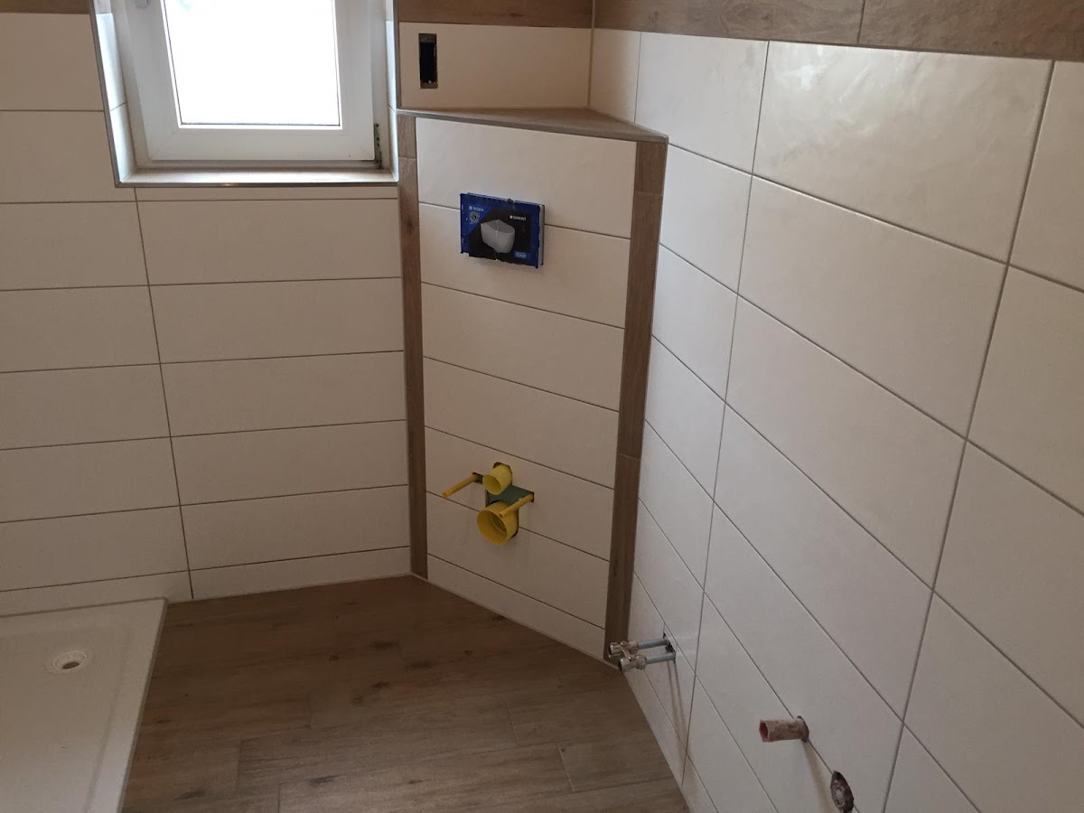 Wir haben unser Bad komplett saniert ich muss sag top die frau Zuckmantel sie hat sie Fliesen sehr sauber verlegt alles top verfugt die frau Zuckmantel Macht eine top Arbeit