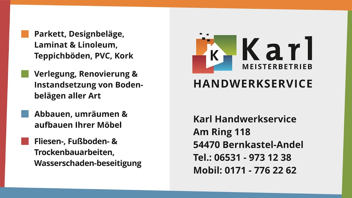 Alles besten beim Firma Karl. Zügige Abwicklung. Im kosten Rahmen geblieben und gut beraten (auch an den anderen Gewerke gedacht!). Alles in Allen gute Arbeit gemacht und fair gewesen. Danke!