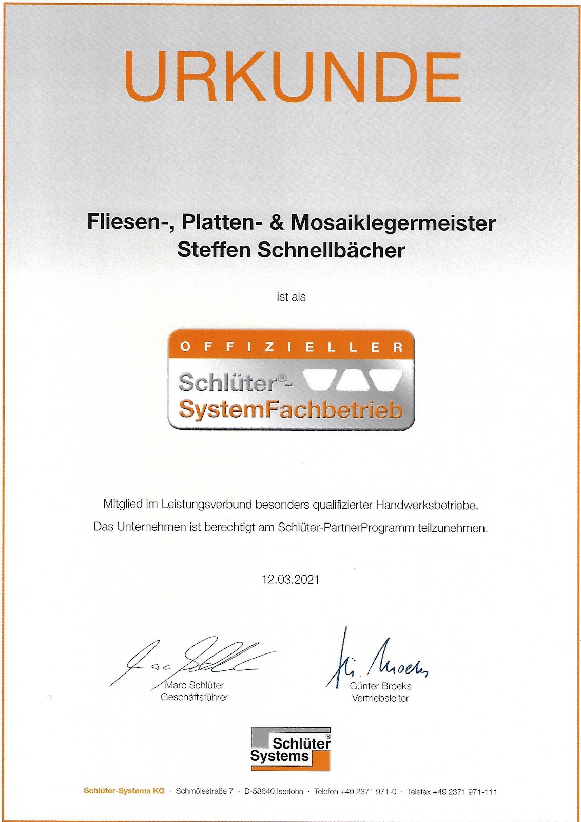 Steffen Schnellbächer Fliesenlegermeister