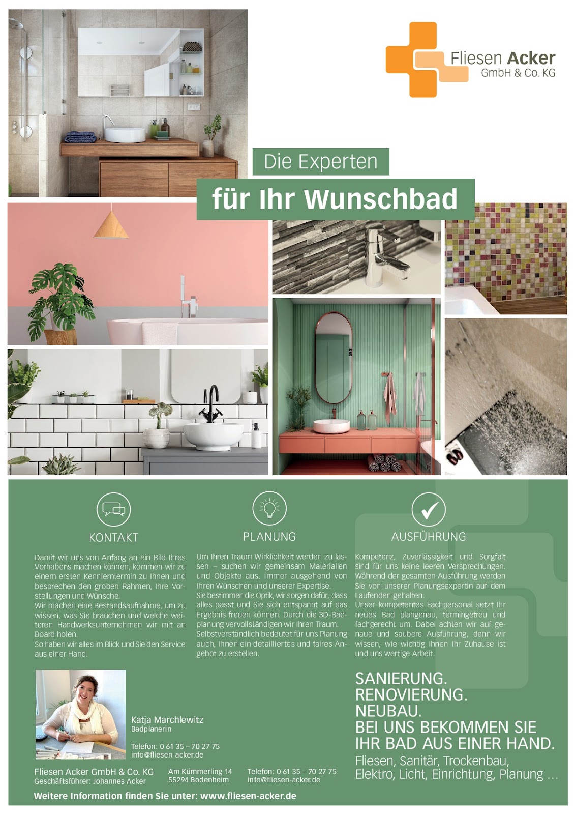 Ich kann mich den sehr guten Bewertungen nur anschließen. Habe mein Bad komplett sanieren lassen. Die Ausführung war fachgerecht, Termine wurden eingehalten, die Kommunikation war hervorragend. Hervorheben möchte ich noch die sehr sympathische, kompetente Badplanerin. Bin total zufrieden mit meinem neuen Bad und freue mich sehr darüber. Liebe Grüße an das Acker-Team