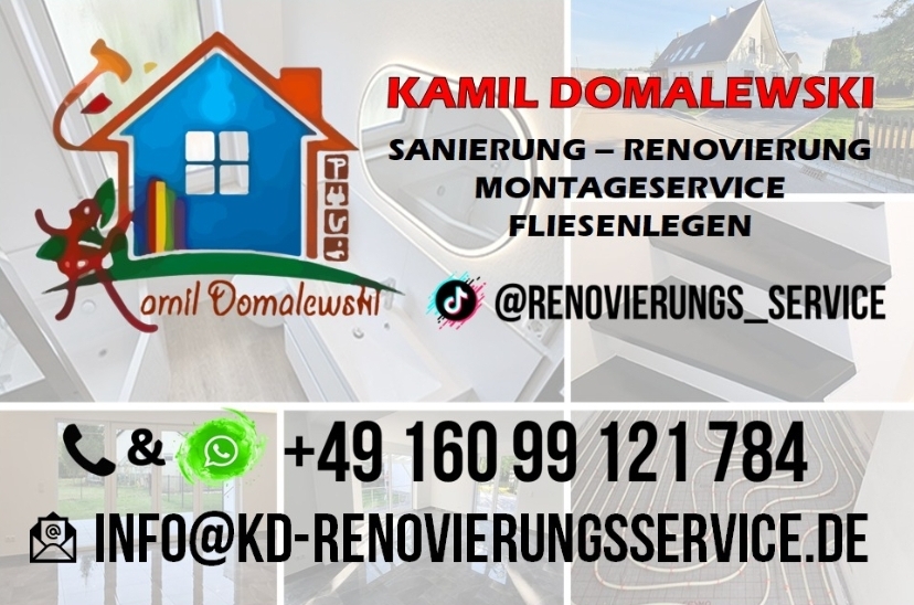 Meine neue Wohnung in Augsburg hatte dringend eine Renovierung nötig. Über Dritte kamen wir auf die Firma von Kamil Domalewski. Gleich beim ersten Treffen war er mir sehr sympathisch und ebenso seine Mitarbeitenden! Toll war der ständige Kontakt und die schnellen Antworten, sowie Lösungen bei Fragen und Problemen. Die Arbeiten wurden prima erledigt und trotz zwischenzeitlicher Planänderungen (welche bei Renovierungen etc. von beiden Seiten aufkommen können) wurde ein mega Ergebnis erzielt! Kamil und sein Team haben unsere Vorstellungen exakt umgesetzt und zudem neue Inspirationen geboten. Vor allem das Bad ist ein absoluter Hingucker!! Wir konnten immer auf seine Zuverlässigkeit zählen, worüber ich sehr dankbar bin. Alles in allem, würde ich Kamil und seine Firma jederzeit weiterempfehlen und freue mich auf künftige Zusammenarbeiten! Vielen Dank für alles! Lena