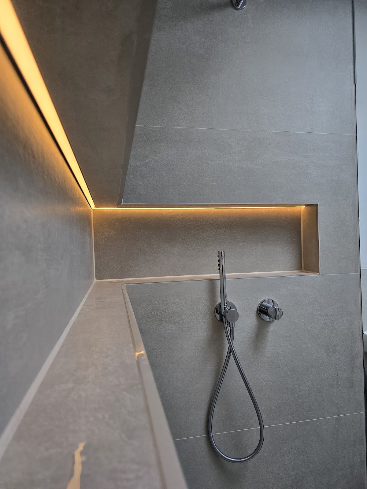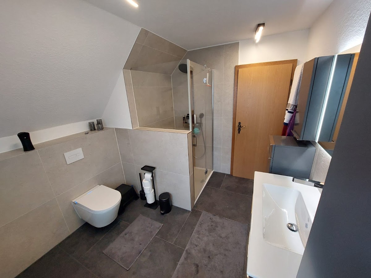 Einfach super Arbeit! Präzise, handwerklich perfekt, absolut verlässlich, gute Laune bei der Arbeit und das sieht man einfach an dem Ergebnis. Wir hatten keinen Planer für unsere beiden kleinen Badezimmer. Mit Hilfe von Falk haben wir das Beste rausgeholt- Minimalistisches Design, verschiedene Größen von Fliesen, Lichtleistungen, Duschfach, Abstimmungen von Farbnuancen und so vieles mehr- überall hatte Falk tolle Ideen und hat sich an unseren Vorstellungen orientiert. Die Fugen sind perfekt. Die Arbeiten mit Silikon sind einfach ein Traum. Die Abschlussleisten sind sehr modern und auch vor große Fliesen gab es kein Halten. Die nächsten Arbeiten rund um Fliesen geht definitiv wieder an Fliesen Falk.