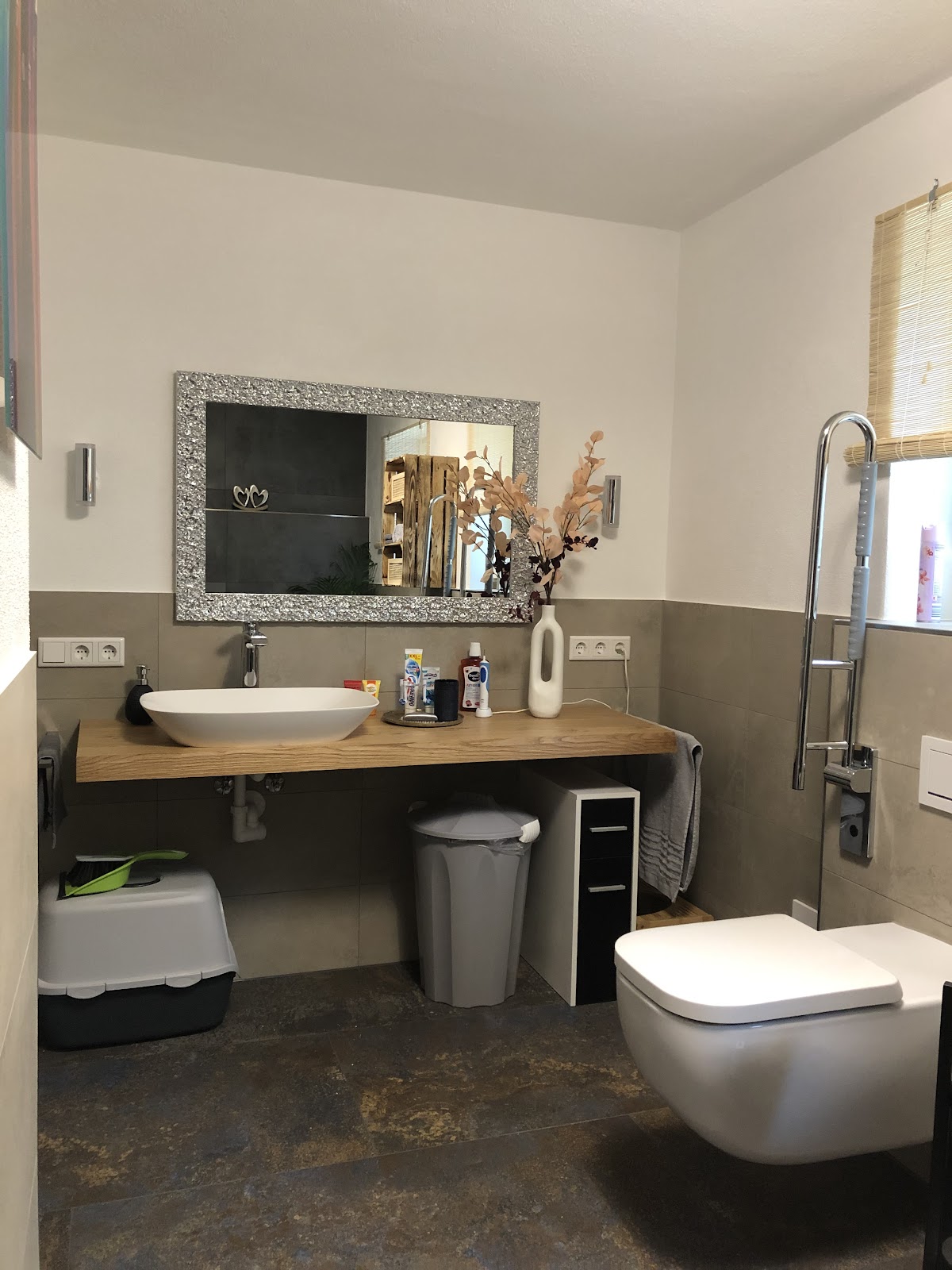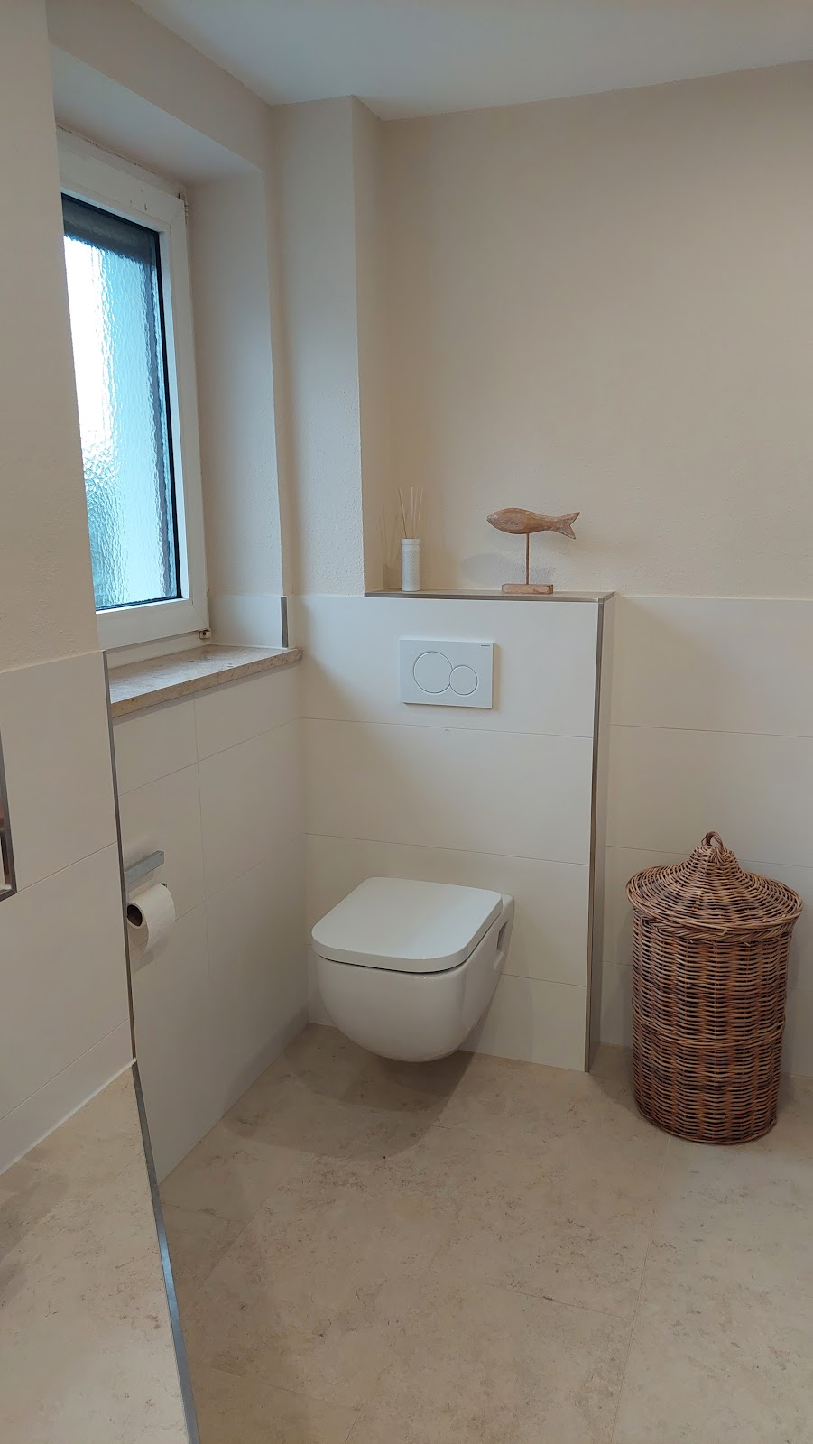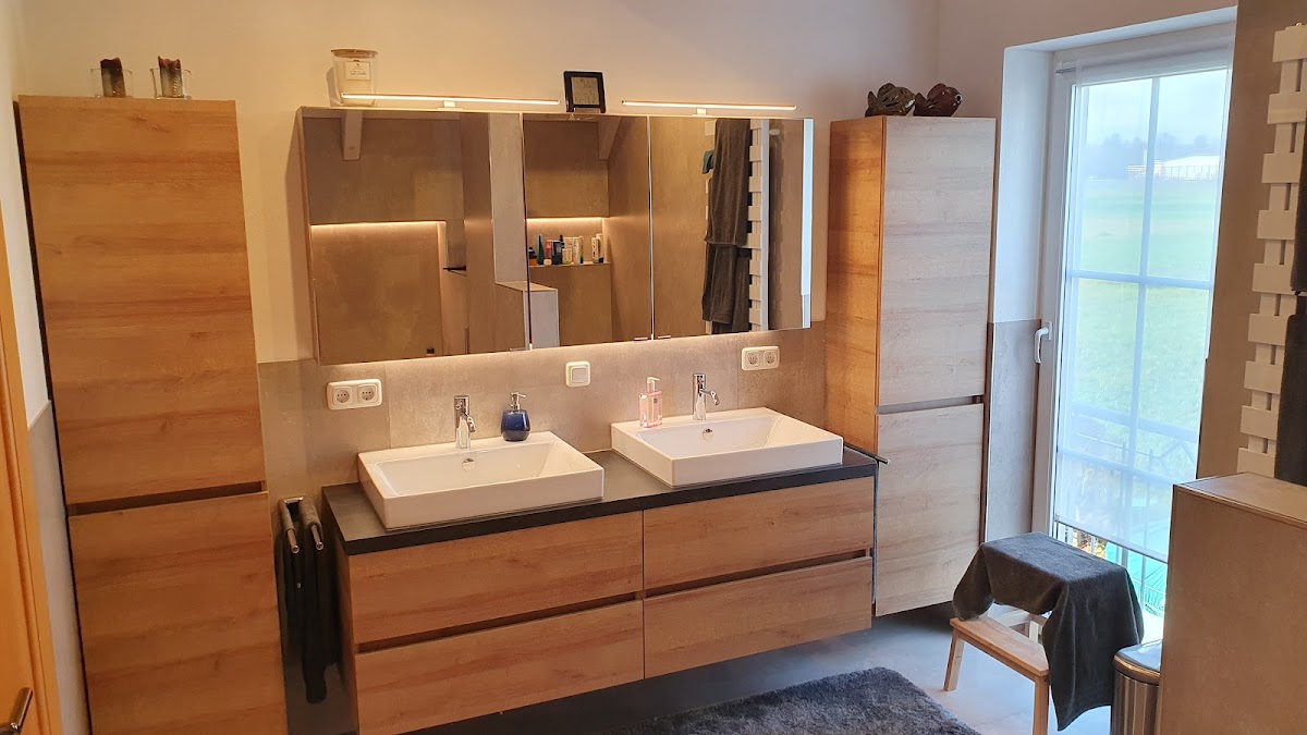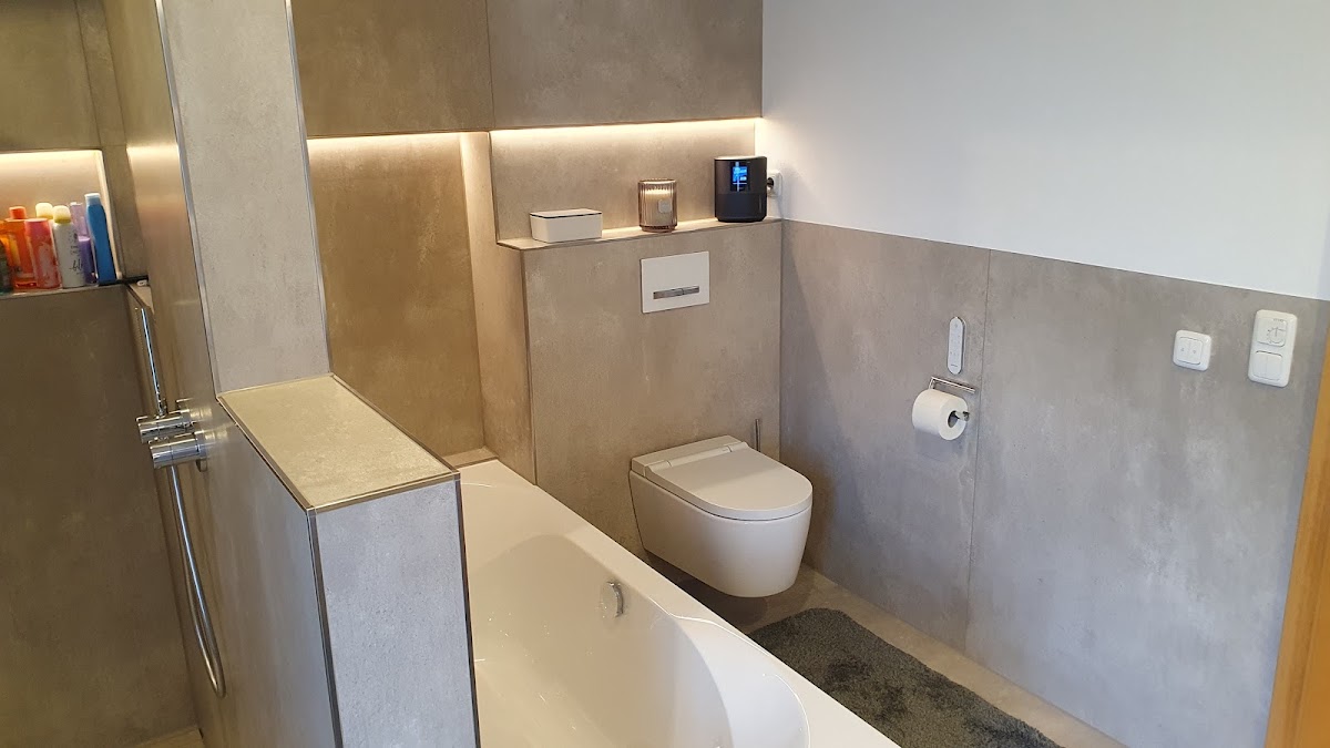 Um es vorweg zu nehmen, wir haben jetzt ein Traum-Bad. Im EG hatten wir einen Duschraum und ein Gäste-WC. Aus diesen beiden Räumen wollten wir ein Gästebad im neuen Alpinen Stil machen. Tobias hat uns bereits während der Planung unterstützt was machbar ist - und es war eigentlich alles machbar. Die Arbeiten wurden nach vereinbartem Termin Pünktlich und perfekt ausgeführt und die Preise bewegten sich im Angebotsrahmen. Besonders hervorzuheben ist sein Mitarbeiter Shandor, der kann einfach alles, ob Estrich, Maurerarbeiten, Trockenbau, Fliesen, Silikonfuge, immer war das Arbeitsergebnis perfekt. Wir können diese Firma nur weiter empfehlen, nicht nur, weil sie super arbeiten, das sind auch noch lauter nette Typen. Wenn wir was zu renovieren haben, kommt nur die Fa. Friedrich in Frage. Update: Wir haben nun auch unser 2. Bad von der Fa. Friedrich renovieren lassen. Das ist nun Traum-Bad Nummer 2. Hier hat die Fa. Friedrich Großformat Fliesen (260x120 cm) verlegt, was soll ich sagen, einfach nur perfekt, besser geht es nicht. Unsere Erwartungen wurden bei Weitem übertroffen.