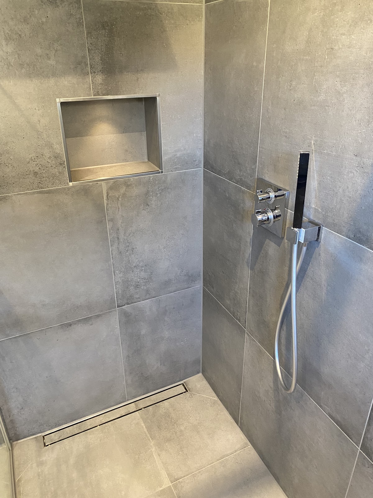 Kevin Balk hat in unserem sanierten Altbau sowohl das Gästebad als auch das Hauptbad gefliest, und wir sind mit dem Ergebnis sehr zufrieden. Seine sorgfältige Arbeit hat unsere Erwartungen klar übertroffen. Trotz der baulichen Herausforderungen, wie Schrägen, Gauben und verwinkelten Ecken, hat er es geschafft, einen äußerst präzisen und symmetrischen Fugenschnitt zu realisieren. Besonders gefallen hat uns die bodengleiche Dusche, die nicht nur optisch ansprechend, sondern auch sehr gut ausgeführt ist. Der Gefälleestrich, den er in beiden Bädern angelegt hat, funktioniert einwandfrei. Ein weiteres Highlight ist die von ihm realisierte Shampoonische, die sich perfekt in das Gesamtkonzept des Gästebades einfügt. Seine durchdachte und sorgfältige Arbeit hat uns überzeugt, und wir würden ihn jederzeit weiterempfehlen.