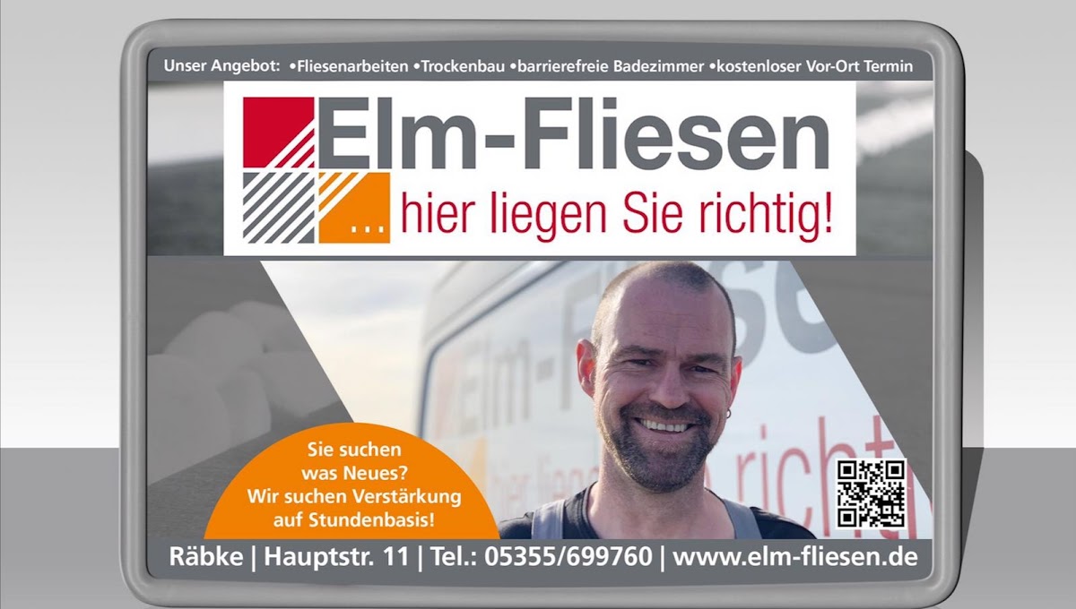 Perfekte Beratung bei der Badgestaltung und der Fliesenauswahl durch Robert und Britta Krause. Hier ist jemand, der sein Handwerk versteht und gute Ideen einbringt und auch umgesetzt. In den 4 Wochen, in denen Elm-Fliesen bei uns tätig war (z.B. Estrich verlegen, komplettes Bad fliesen, ebenerdige Dusche, Tür und Fenster einbauen, etc.), wurden die Arbeit in vollster Zufriedenheit erledigt. Es wurde sauber gearbeitet und nach Feierabend wurde die Arbeitsstätte immer sauber hinterlassen. Auch alle auftretenden Schwierigkkeiten, durch nicht die ganz optimale Raumaufteilung, wurden Dank der intelligenten Vorschläge von Robert optimal bewältigt und optisch ansprechend umgesetzt. Andere Gewerke wurden terminlich koordiniert, sodass wir uns nicht darum kümmern mussten. Wir hatten echtes Glück mit dieser Firma. Wir waren ganz schwer beeindruckt und können Elm-Fliesen wärmstens weiterempfehlen. Andreas und Bianka Schüßl