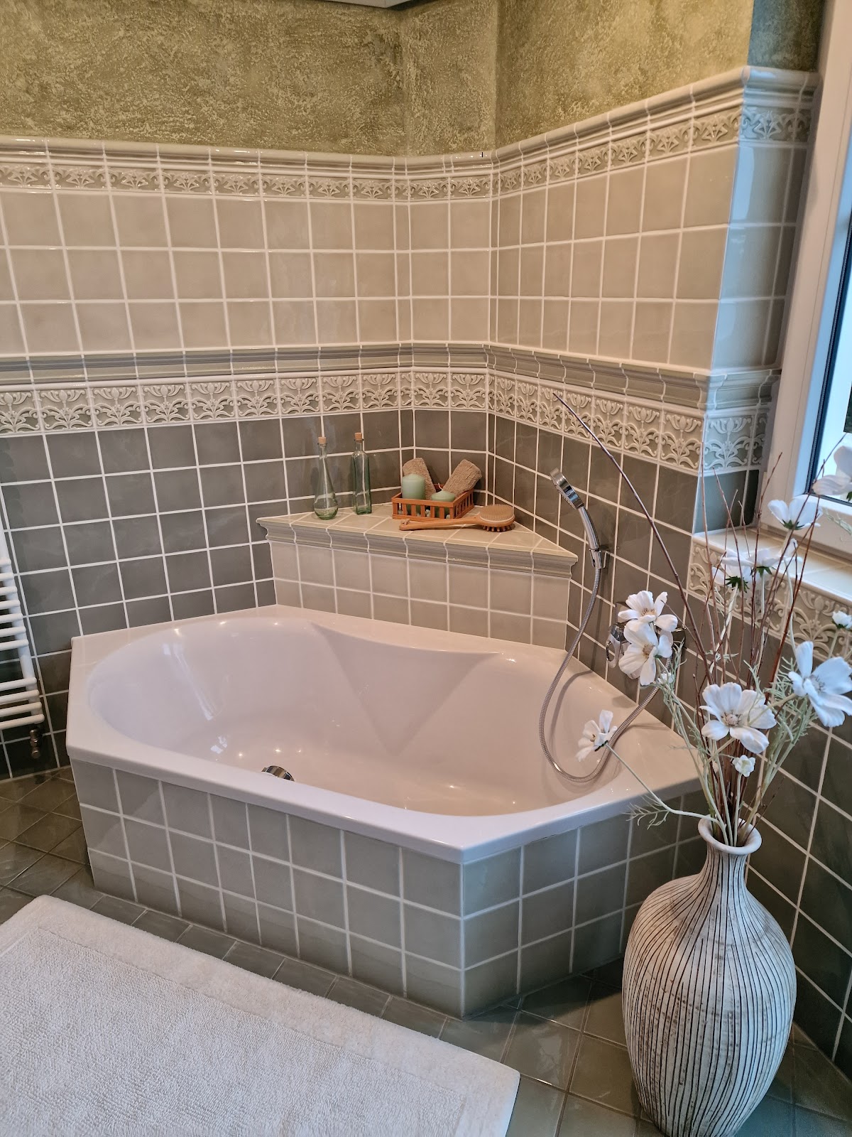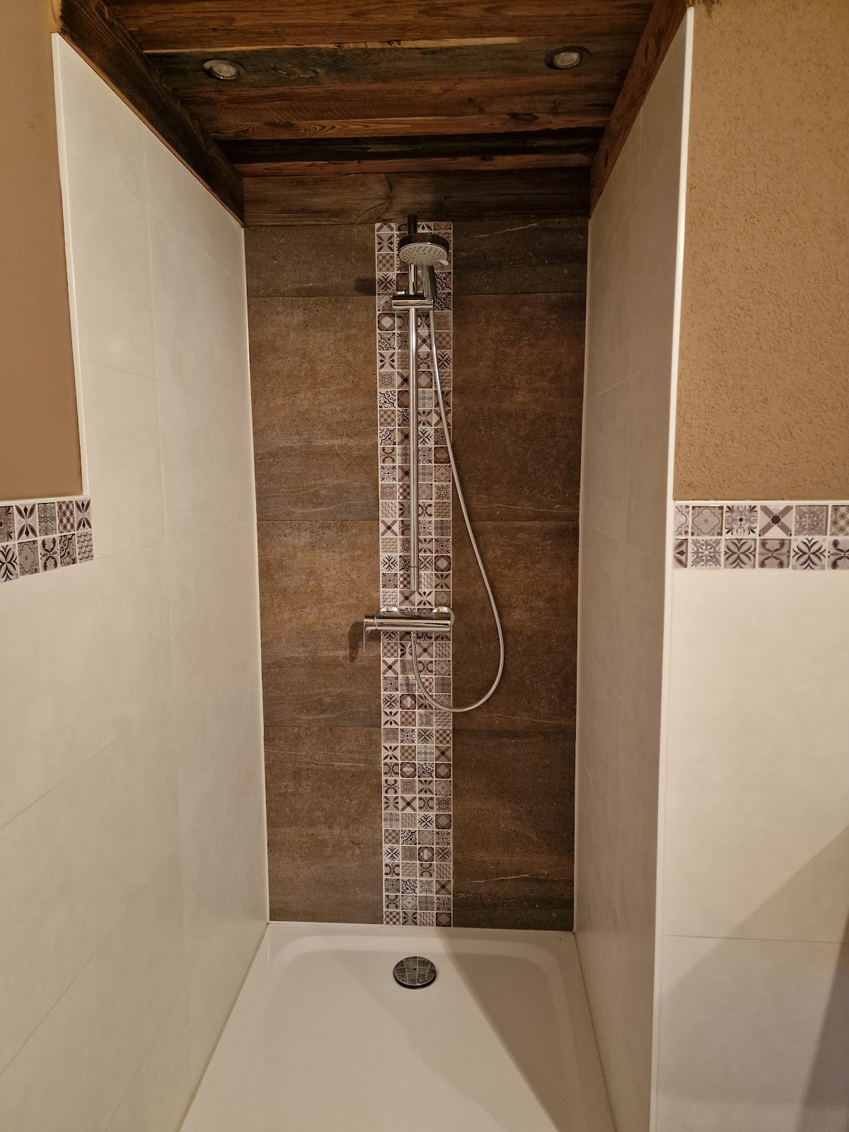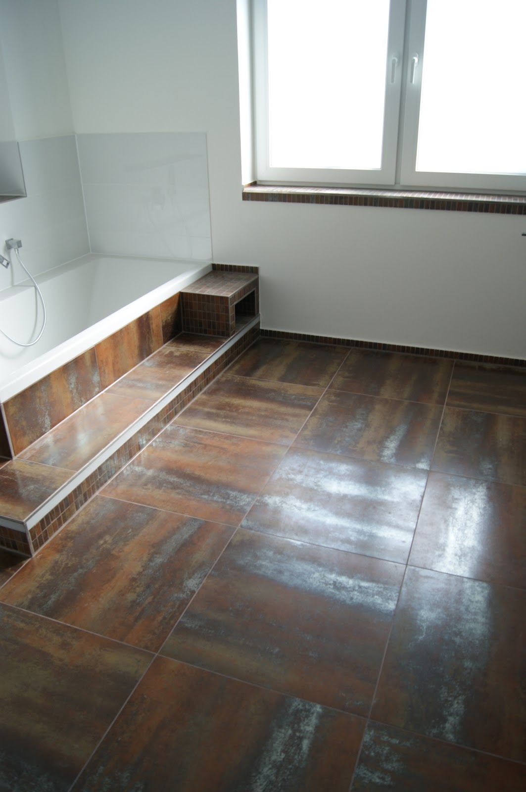 Bei uns wurden mit viel Liebe und sorgfalt 3 Bäder, Küche, Diele und Esszimmer mit 120x120er Fliesen verlegt. Dazu noch ein paar Muster Fliesen.