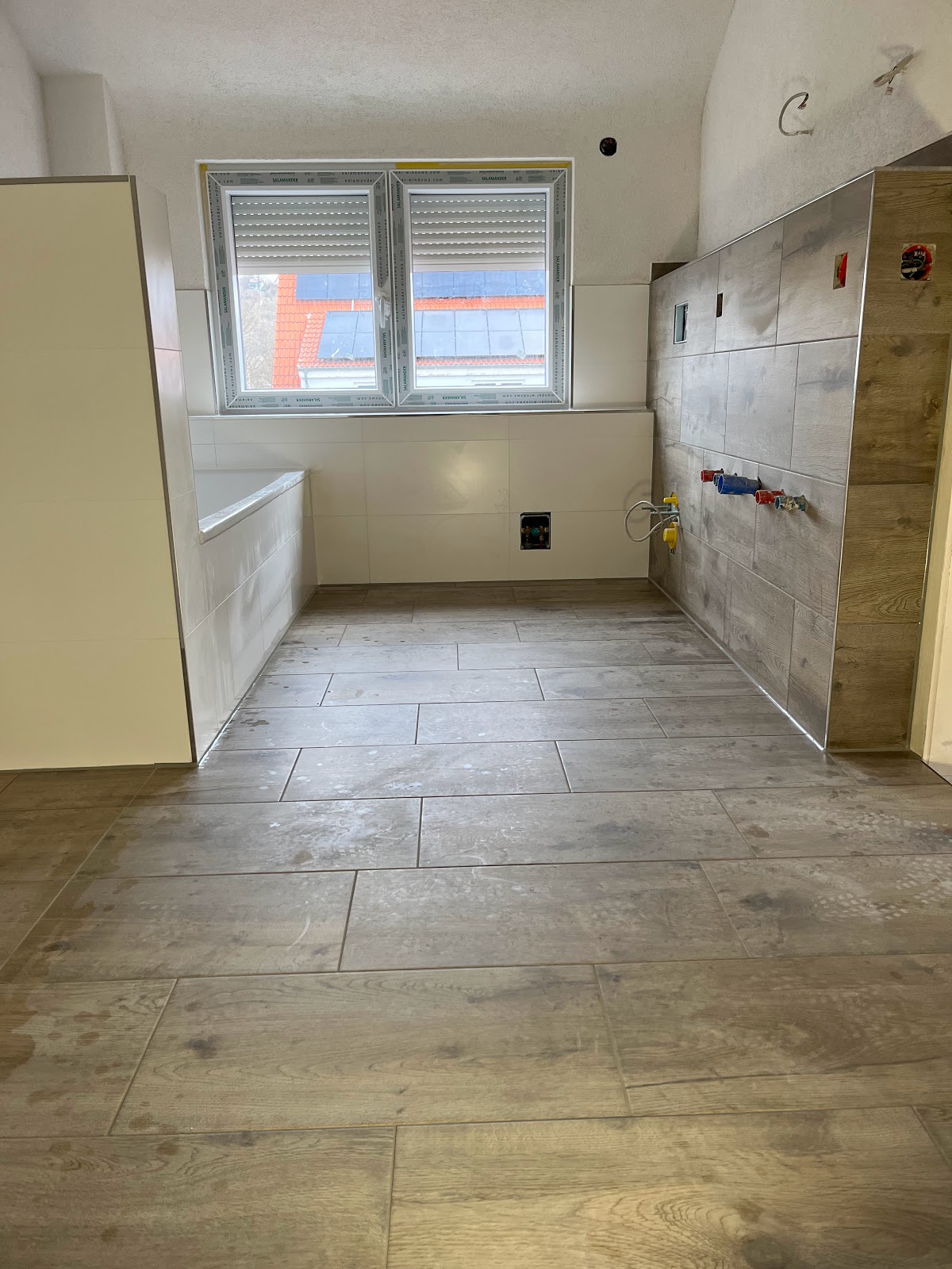Bei uns wurden 2 Küchen, Duschen und Bäder, Büros, Vorraum und das Treppenhaus mit verschiedenen Fliesen gemacht.