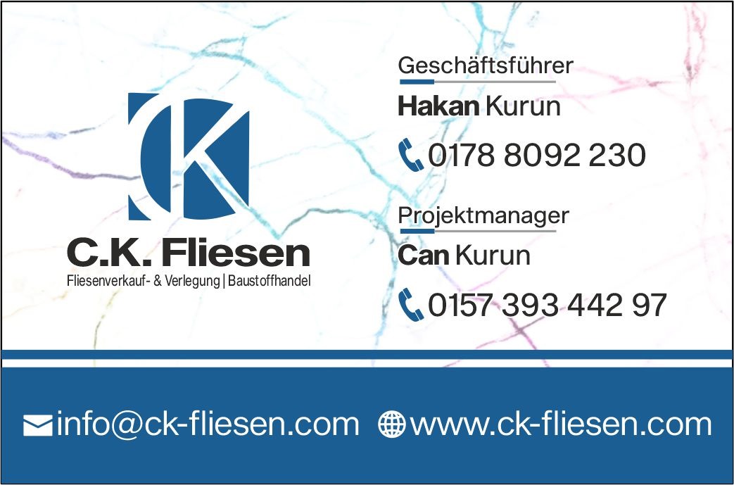 Top Service und erstklassige Arbeit! Ich habe CK Fliesen für die Renovierung meines Badezimmers beauftragt und bin begeistert. Die Beratung war kompetent und individuell, und die Umsetzung war einfach perfekt. Jede Fliese sitzt exakt, die Arbeit wurde schnell und sauber erledigt. Besonders beeindruckt hat mich die Freundlichkeit und Professionalität des Teams. Ich kann CK Fliesen nur weiterempfehlen! Vielen Dank für das tolle Ergebnis.